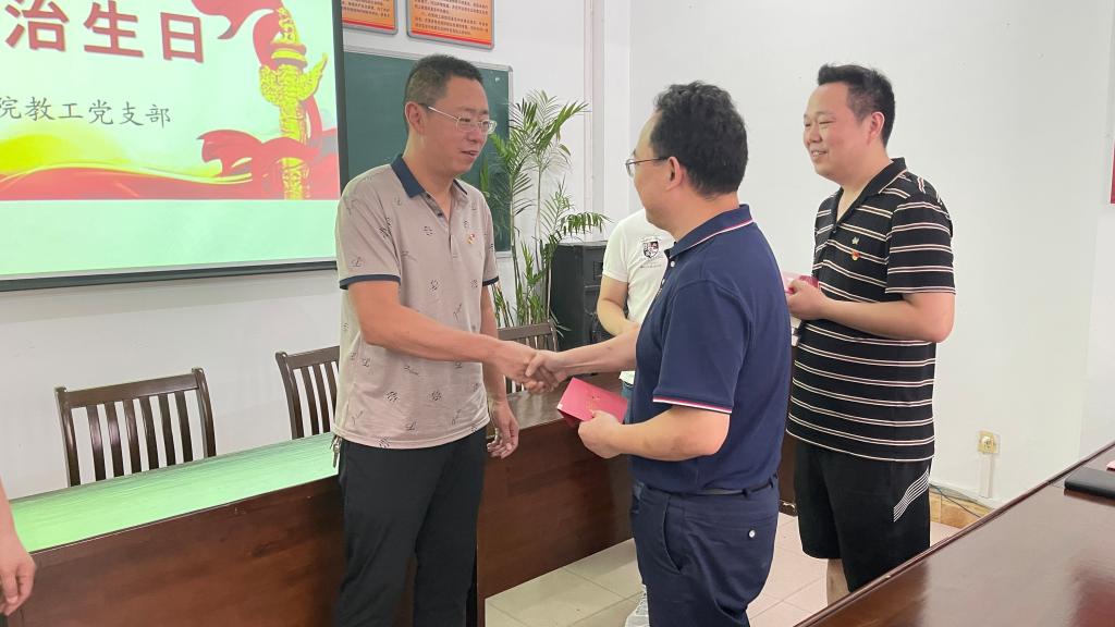 党课结束后,支部向六月份过政治生日的同志表示了祝贺并赠送了政治生日贺卡和书籍,徐春和谭晓波两位同志分享了自己的感悟,全体党员重温了入党誓词。