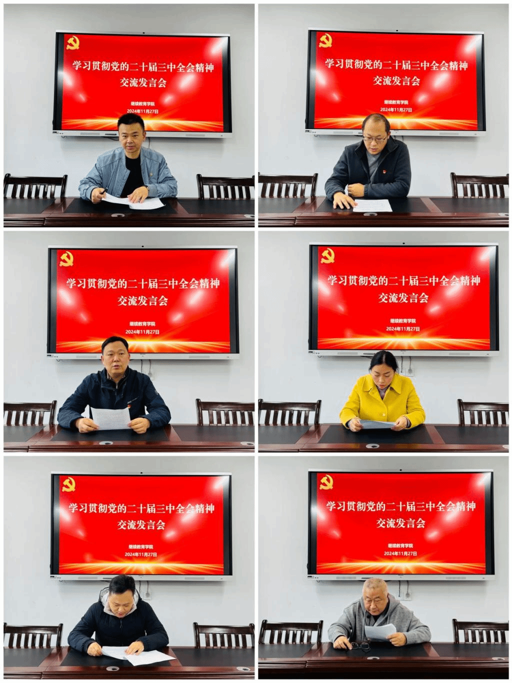 与会教师结合自己的学习和工作实际,分享了学习体会和感悟,充分展示了近期的学习成果。大家纷纷表示,在今后的工作中,将深入学习贯彻党的二十届三中全会精神和习近平总书记考察江西重要讲话精神,聚焦公司“3353战略”和建设特色鲜明的高水平应用型大学目标任务,切实把公司第二次党代会精神转化为推动公司高质量发展的动力。