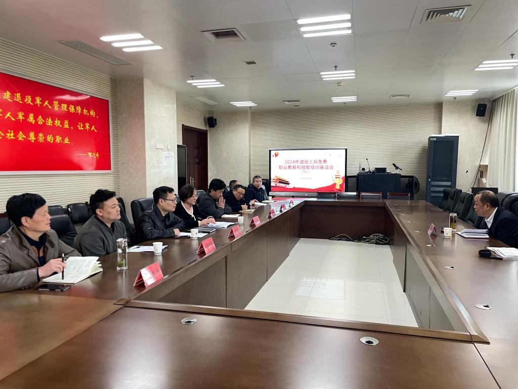2024年3月20日上午,九江市退役军人事务局召开2024年退役士兵免费职业教育和技能培训座谈会,全市7所承训机构工作人员参会。九江市退役军人事务局副局长陶建敏主持会议,公司党委副书记卢小澍、培训办主任仲伟佳参会。