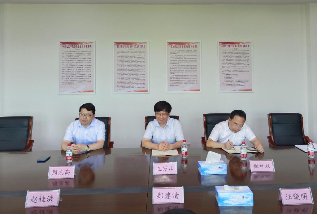 6月26日下午,江铜集团城门山铜矿党委书记郑建清、矿长赵桂洪一行来公司调研,副董事长王万山及BB贝博艾弗森、外国语公司负责同志参加调研会。