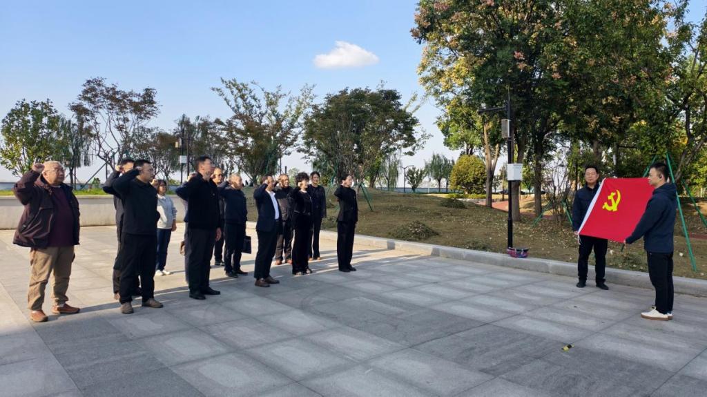 活动首站,全体党员来到国家长江文化公园九江城区段,沿着习近平总书记考察路线,开展了一场生动的现场教学。在实地走访与情景回顾中,党员们深刻感悟习近平总书记重要讲话精神的丰富内涵与实践要求,进一步坚定了扎根基层、服务社会的信心和决心。将党建品牌理念“红纽带”具象化为可感知、可理解、可践行的行动指南,引导党员深刻理解“红纽带”品牌价值,自觉成为“红纽带”的编织者、强化者和延伸者,凝聚起推动公司事业发展的强大合力。