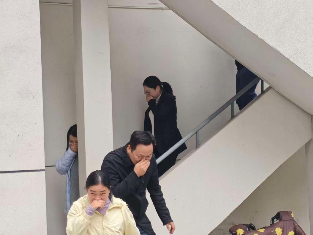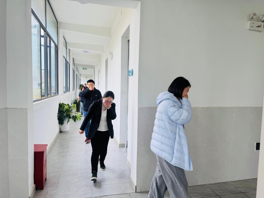 随后,根据消防应急疏散预案开展应急疏散演练。大家捂住口鼻,弯腰低姿,按照预定的疏散路线迅速、有序地撤离到指定安全地点。同时,部分教职工在其他教职工离场后,认真清查每间办公室是否有人未退场。